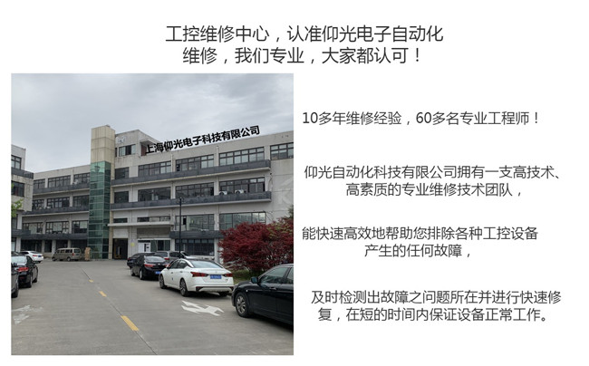 "仰光自動化" ,二十年專注維修,三十多名維修工程師,經驗豐富,有著十年以上的工業自動化維修經驗,維修能力均能達到“芯片級”。每周公司內部都會設有維修培訓課,維修分享課等經驗積累需求,只為提供更好的服務給客戶,讓客戶更放心!孰能生巧的維修手段,讓工程師們都能夠快速排查故障并迅速解決,不耽誤客戶使用時間。毛工:15800396882 微信同號